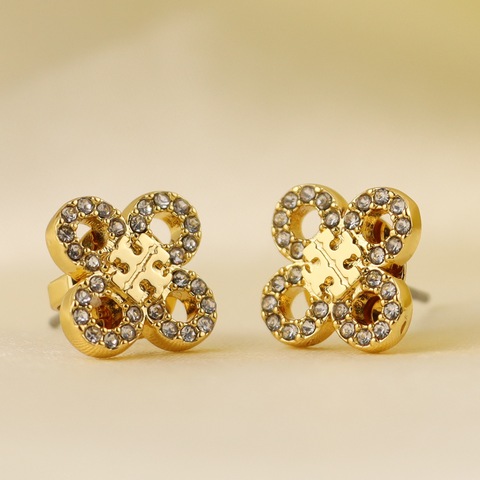 Nuevo elegante refinamiento diamante flor doble T Logo moda pendientes promocionales mujeres